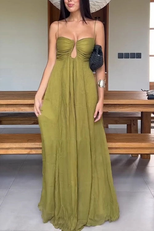 Rowangirl Spaghetti Atrap U-shaped Vacation Maxi Dress