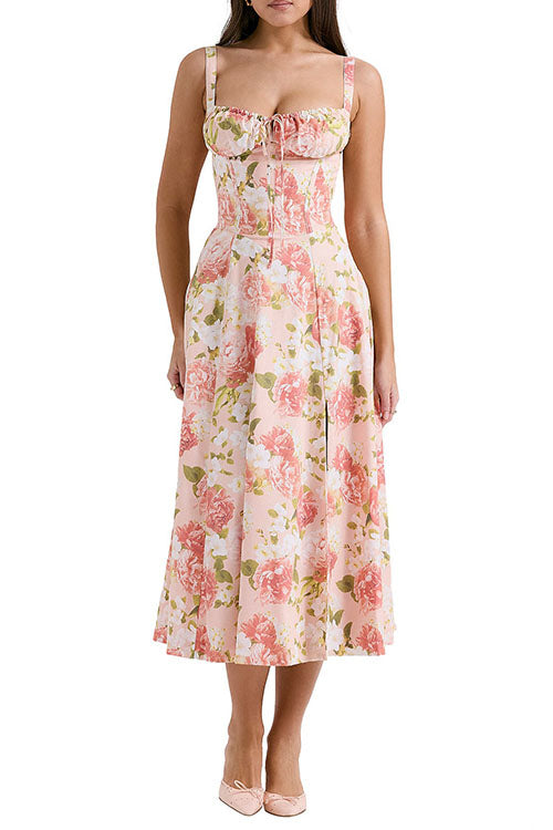 Rowangirl Printed V-Neck Open Waist Slim Fit Dress