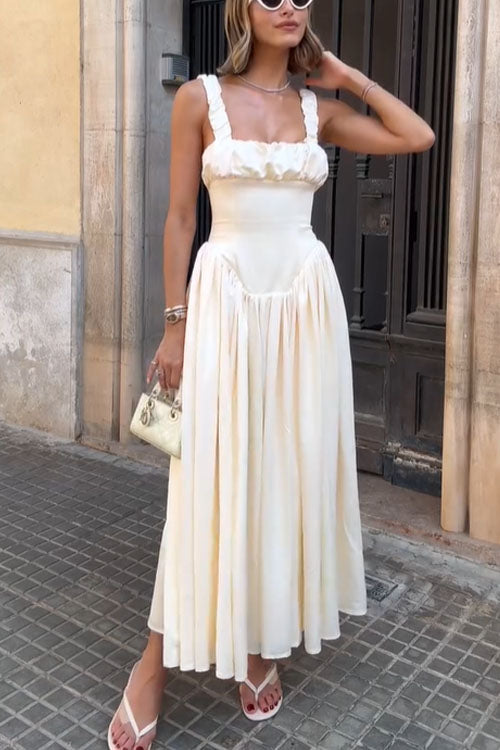 Rowangirl Off-Shoulder Open-Back Sleeveless High-Waist Pleated Dress