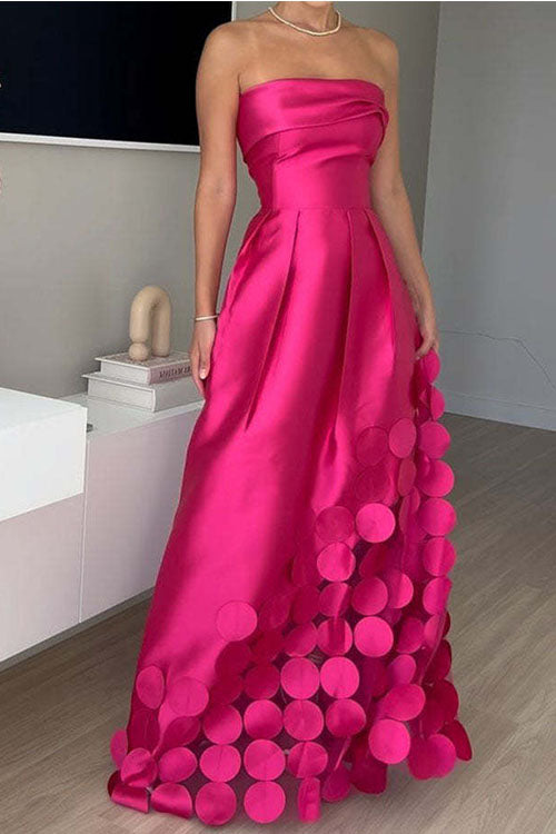 Rowangirl Stylish And Elegant Pleated Strapless Solid Color Dress