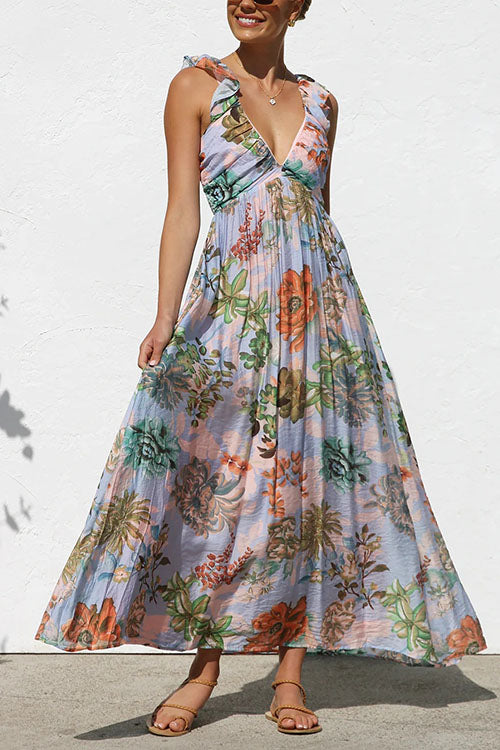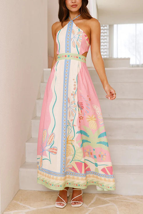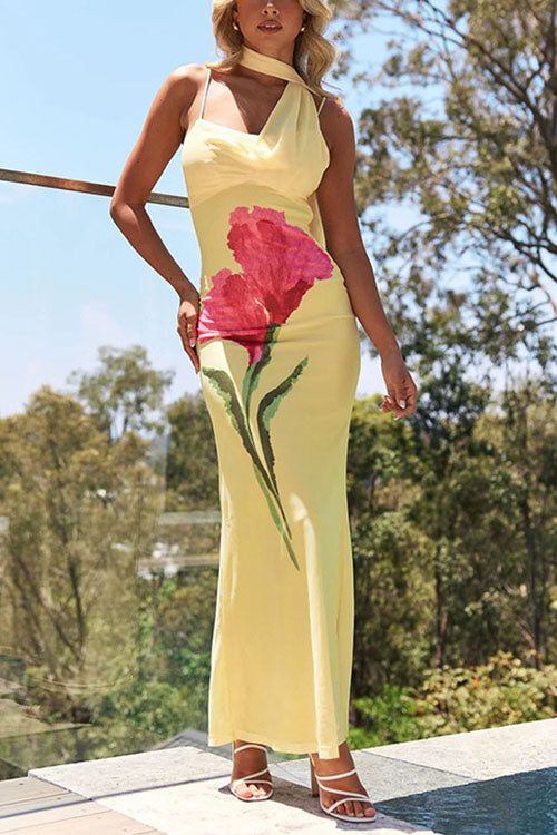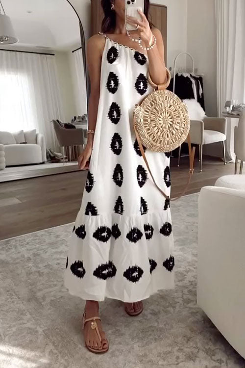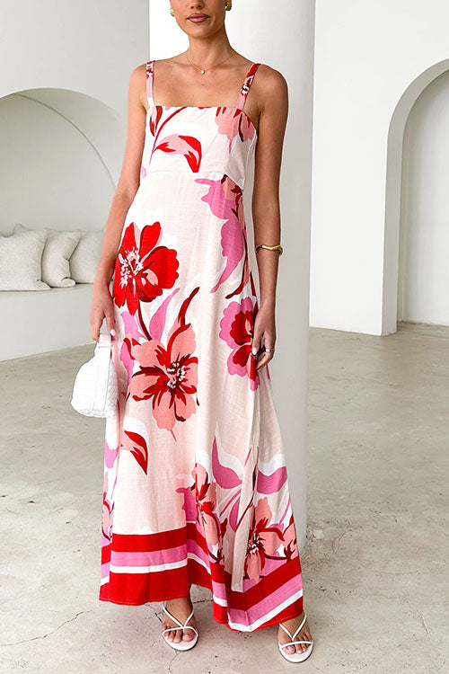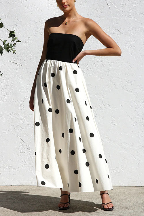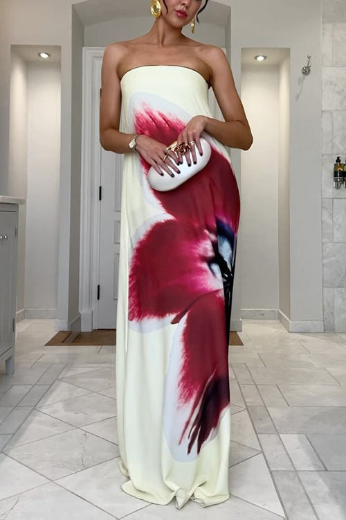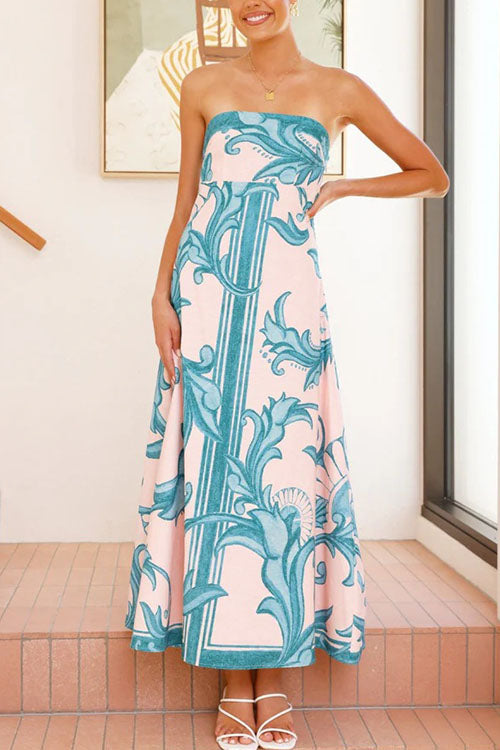 Rowangirl Printed Temperament A-line Suspender Tube Top Long Dress