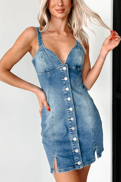 Rowangirl Fashionable Aand Versatile Denim Suspender Dress
