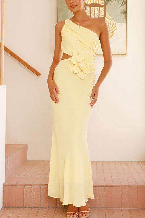 Rowangirl Ruffled One-shoulder Solid Color Dress