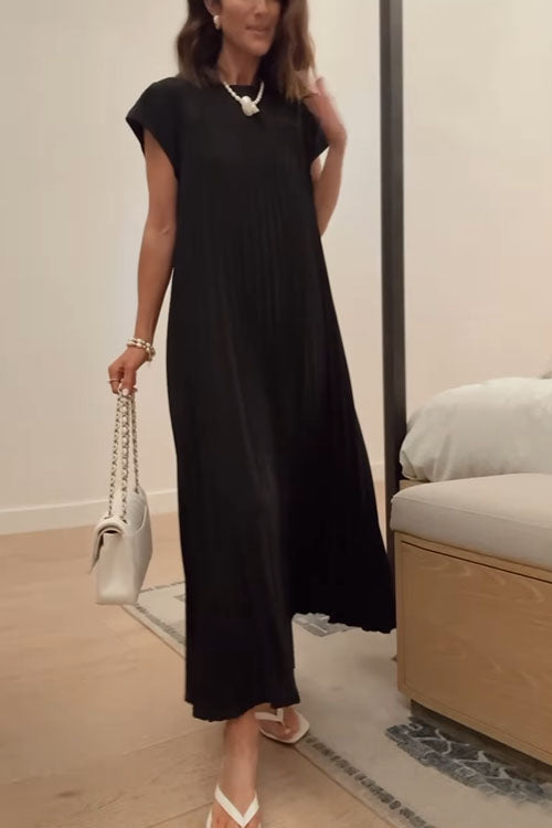 Rwangirl Elegant And Fashionable Round Neck Pleated Long Dress