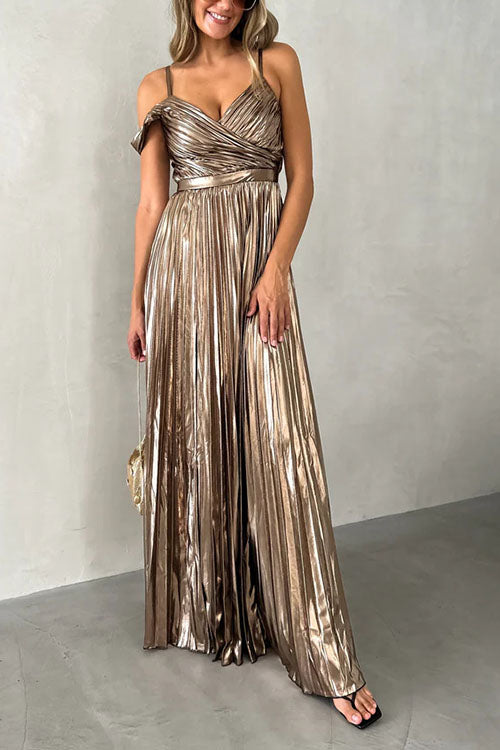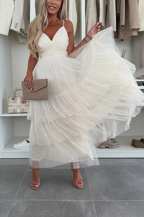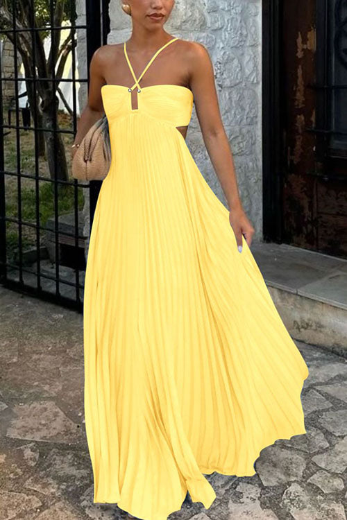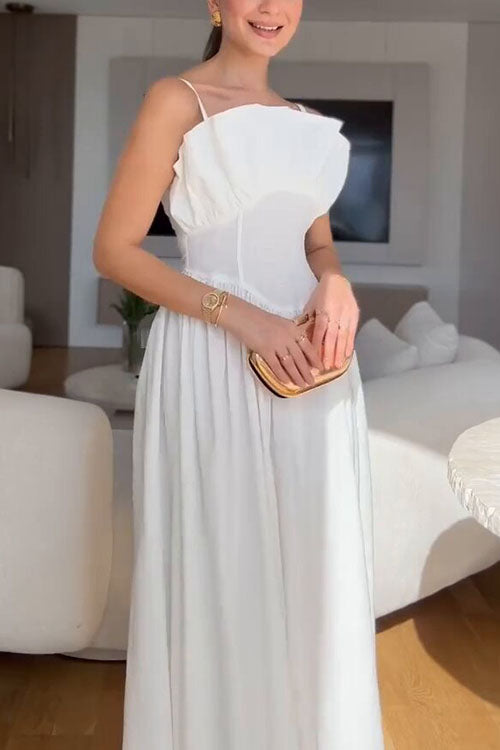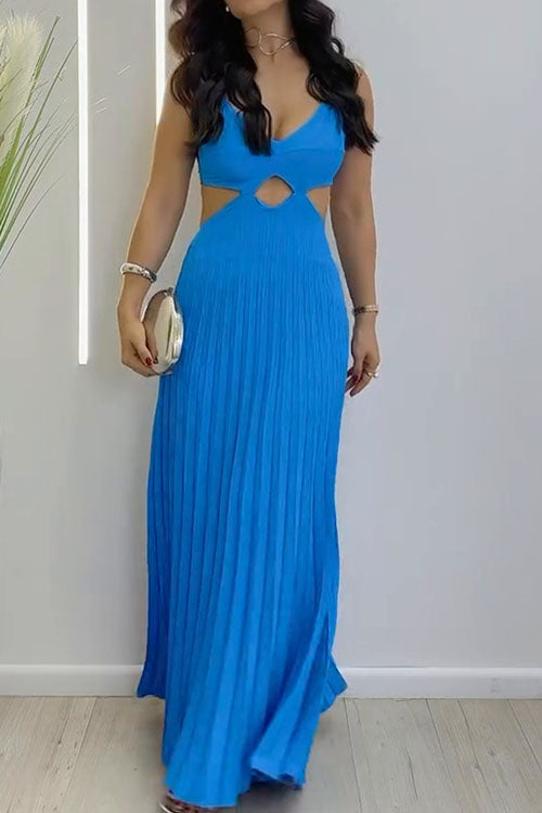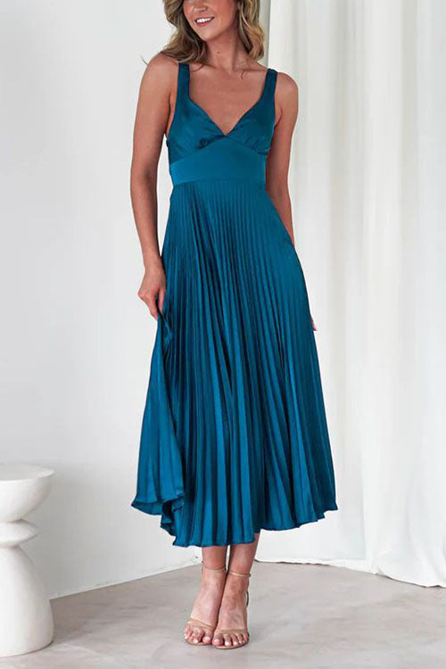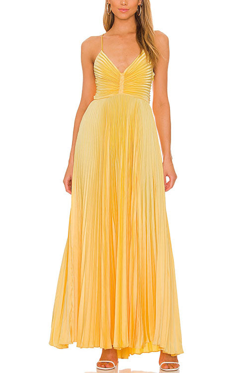 Rowangirl Solid Color Pleated Sexy V-neck Suspender Dress