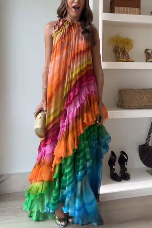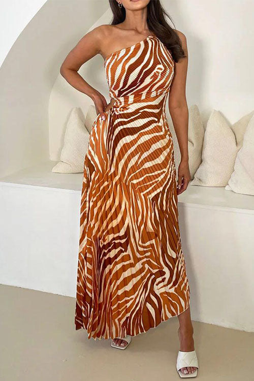 Rowangirl Pleated Printed One-Shoulder Sleeveless Dress