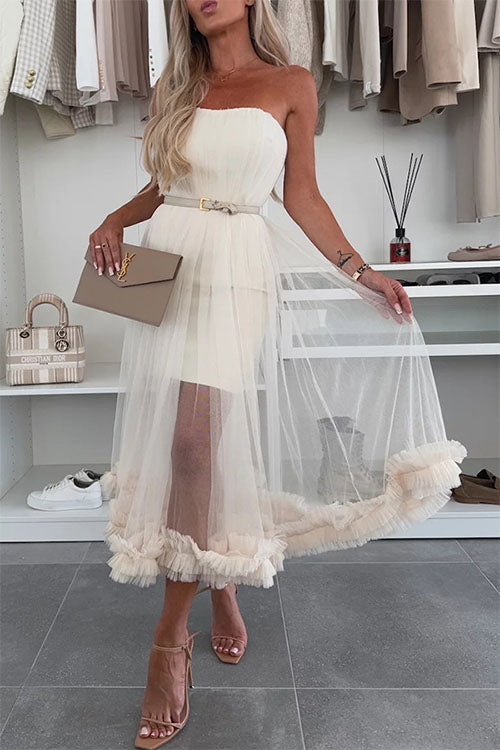 Rowangirl Strapless Satin Sleeveless Stitching Solid Color Ddress