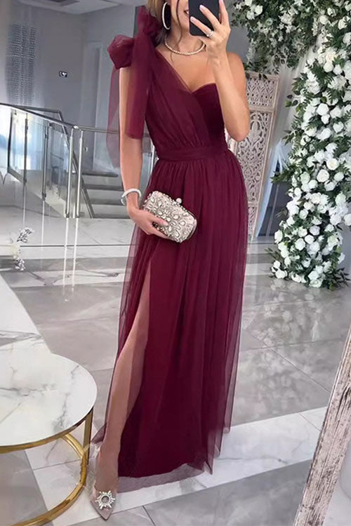 Rowangirl Mesh Temperament Slim Off-shoulder Evening Dress