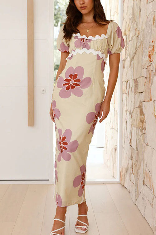 Rowangirl Fashionable Temperament Sling Flower Slim Dress