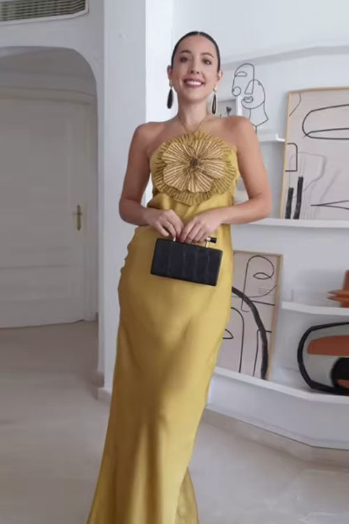 Rowangirl Fashionable Strapless One Shoulder Sleeveless Dress