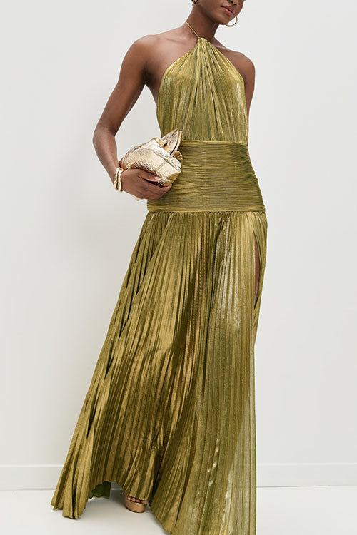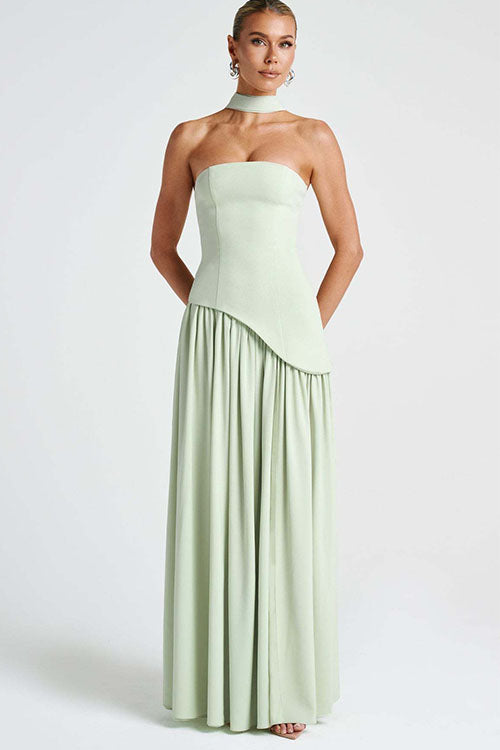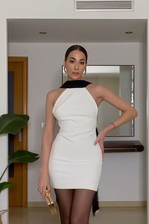 Rowangirl Solid Color Sleeveless Halter Neck Dress