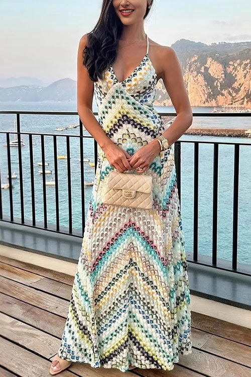 Rowangirl Halter Neck Open Back Printed Satin Dress