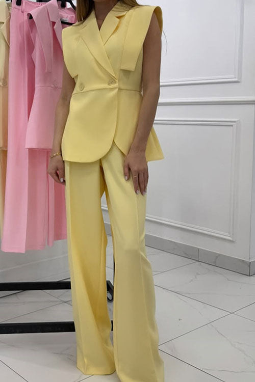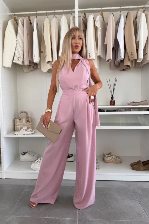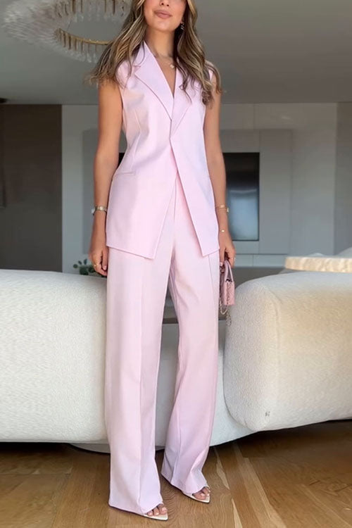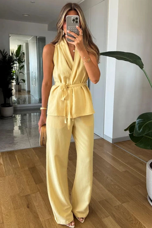 Rowangirl Sleeveless Tie Solid Color Straight-Leg Two-Piece Suit