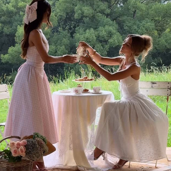 Rowangirl High-waisted Slim-fitting Suspender Dress With Printed Design